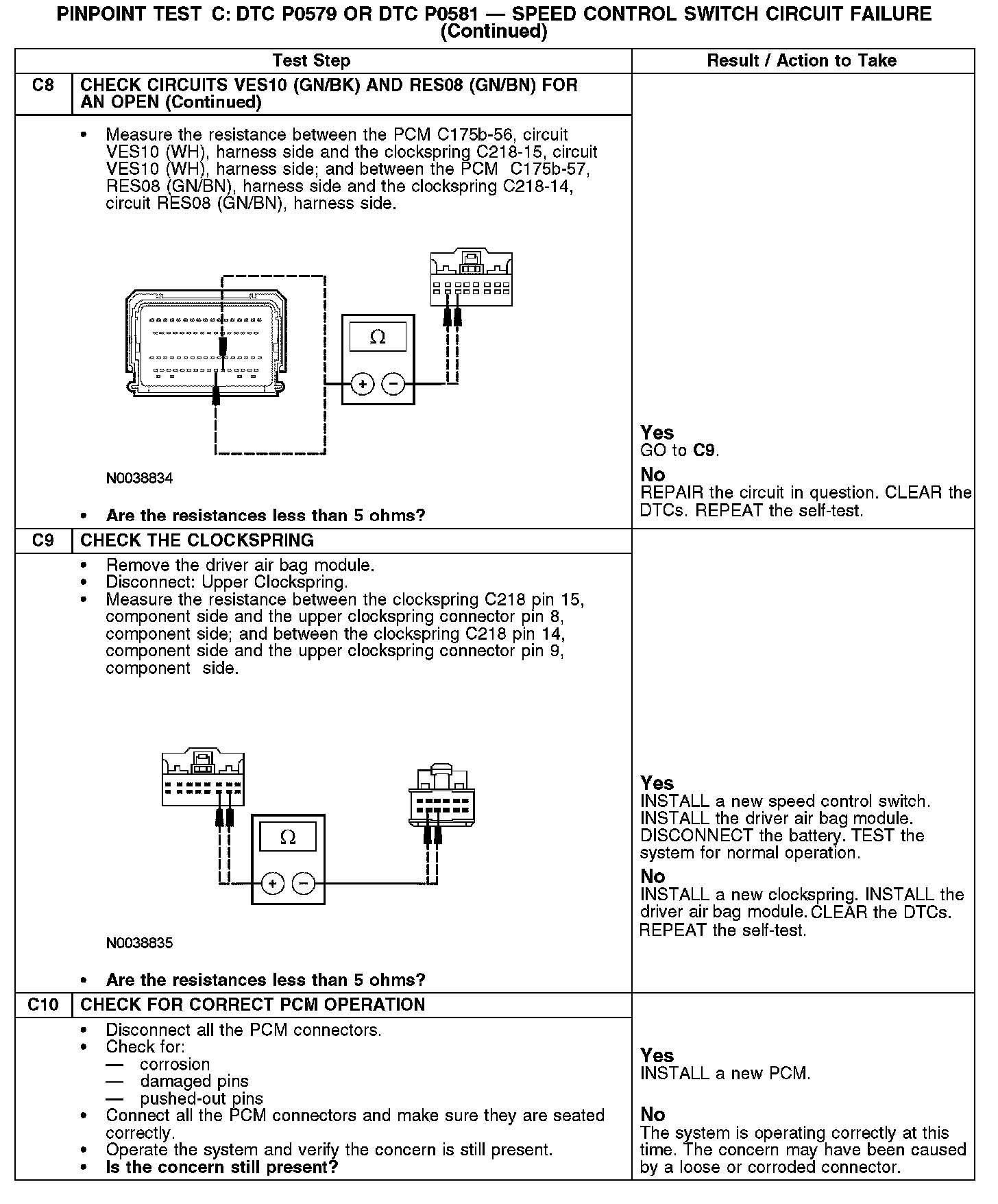 Test C: DTC P0579 Or DTC P0581 - Speed Control Switch Circuit Failure