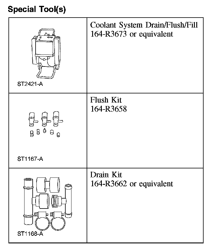 Use cooling system Flush-All, Flush Kit Hardware Package and Drain kit to flush the engine and radiator. Use Premium Cooling System Flush.