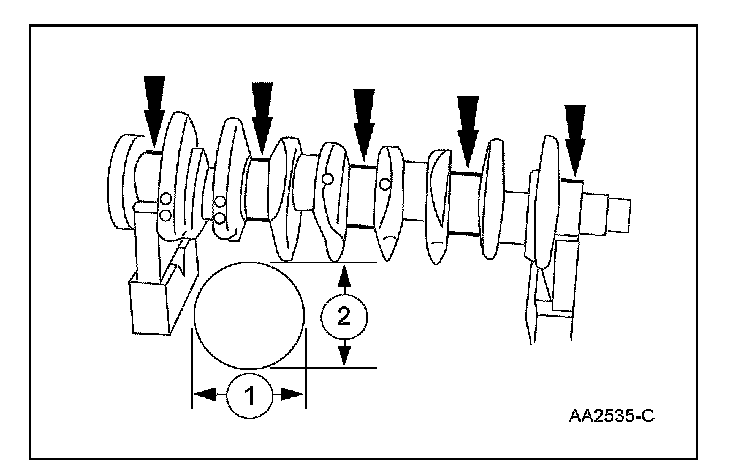 1. Measure each of the crankshaft main bearing journal diameters in at least 2 directions at each end of the main bearing journal.