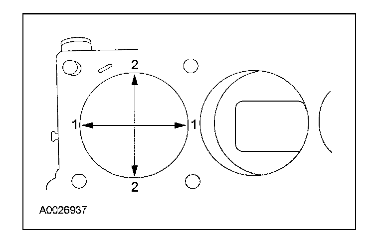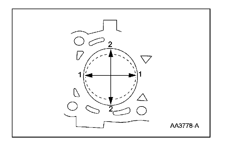 piston ring travel in 2 directions as indicated. Verify the cylinder bore is within the wear limit. The difference indicates the cylinder bore taper. Bore the cylinder to the next oversize limit.