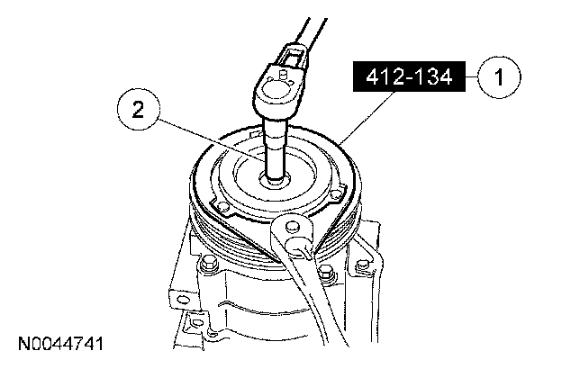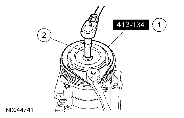 1 Using the special tool, hold the A/C clutch disc and hub.