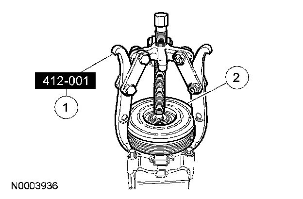 NOTE: The A/C clutch components should be reused unless obvious signs of damage are found. If excessive grooving is found, a new A/C clutch disc and hub and a new A/C compressor pulley must be installed together. Otherwise, each component can be installed individually where needed.