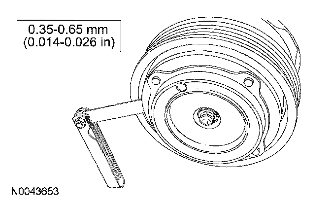 11. Measure and adjust the clutch air gap by removing or adding A/C clutch disc and hub spacers.