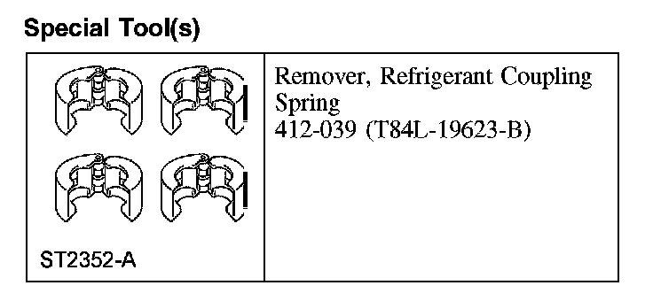 3. CAUTION: Do not use a screwdriver or similar tool to remove the air conditioning (A/C) tube lock coupling spring; this may cause axial scratches across the O-ring seal grooves resulting in refrigerant leaks.