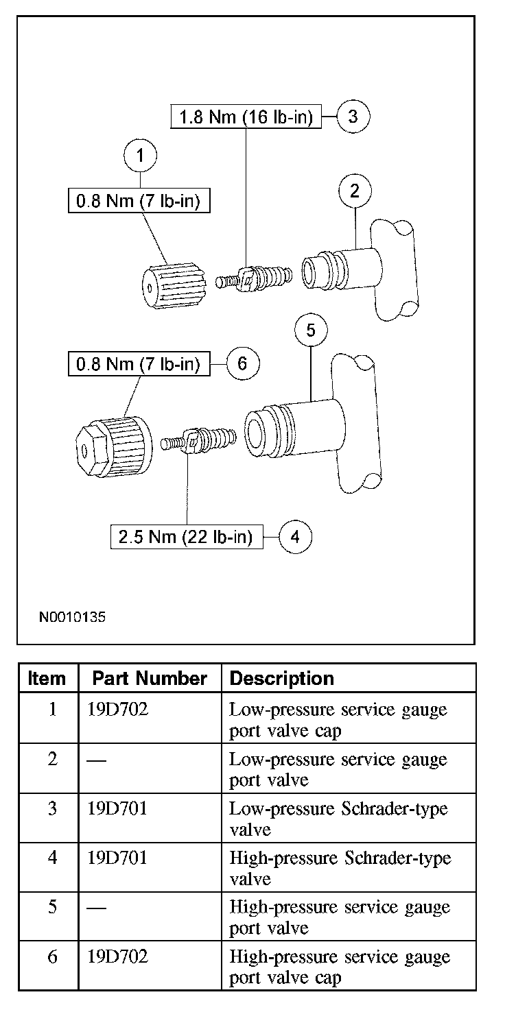 - The service gauge port valve caps are used as primary seals in the refrigerant system to prevent leakage through the Schrader-type valves from reaching the atmosphere. Always install and tighten the A/C service gauge port valve caps to the correct torque after they are removed.