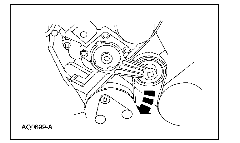 1. Rotate the accessory drive belt tensioner clockwise and remove the accessory drive belt.