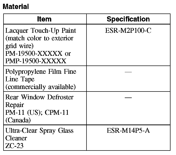 - If the brown layer is not broken or missing, apply only the silver grid repair compound to the break. If both the brown and silver layers of the grid are broken or missing, apply a coating of the lacquer touch up paint across the break in the grid line prior to applying the rear window defroster repair compound. Do not overlap the silver grid line with the paint. Several applications may be necessary to achieve a color match.