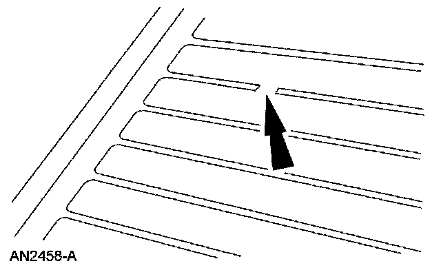 NOTE: The grid line material is not embedded into the glass but is baked to the glass surface and consequently can be scraped off. An undamaged grid line will have small ridges that project above the surface of the glass and can easily be felt when running a fingernail across them. Grid lines that have been "razor bladed" will feel smooth when a fingernail is dragged across the affected area. Inoperative lines may appear to the eye to be undamaged due to residue remaining on the glass and will require diagnosis with a voltmeter or 12V test lamp.