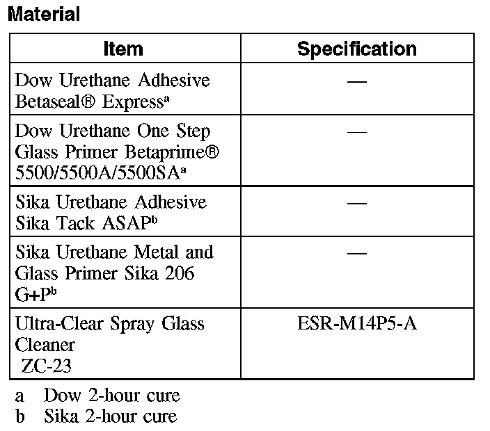 - Be sure to use the same brand and cure-rate products for the adhesive and primer. Do not mix different brands of urethane and primer. Refer to the Material Chart in this procedure.