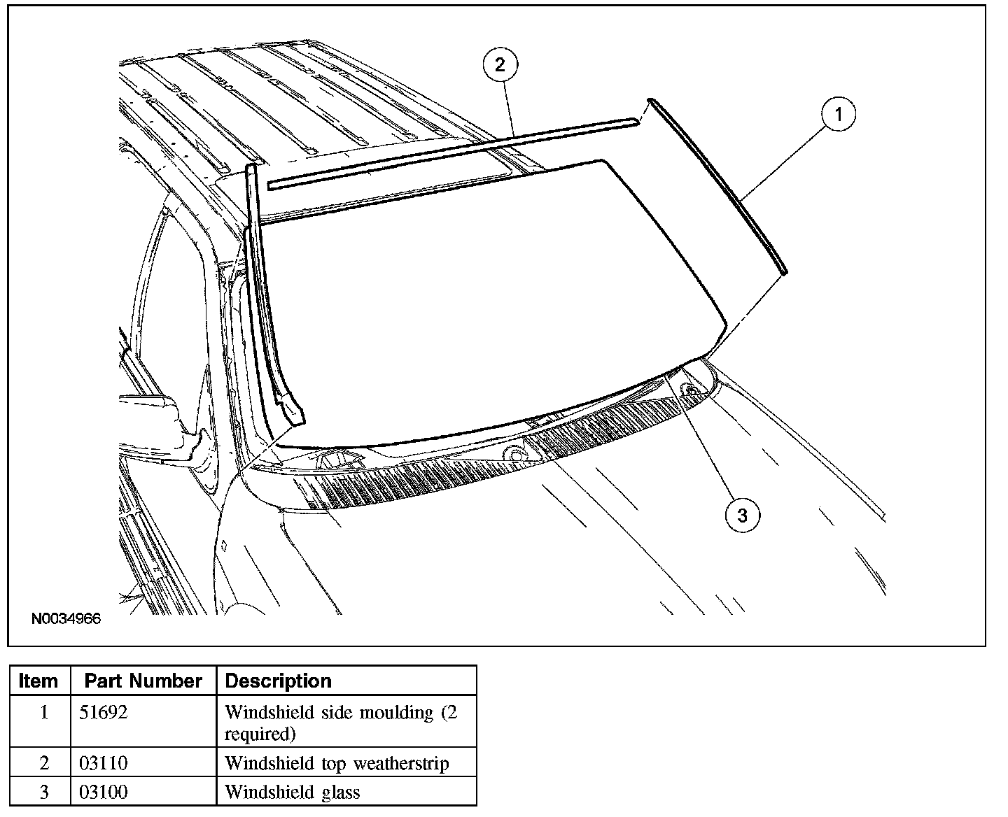 NOTE: If the windshield glass is being removed to repair a dust/water leak, remove and reinstall the existing windshield glass.