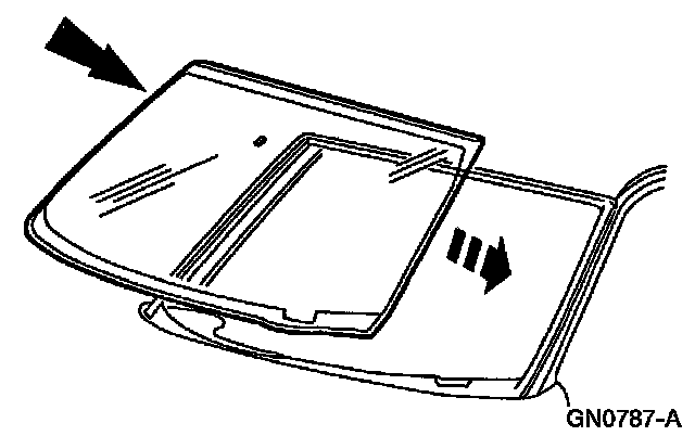 CAUTION: Before positioning the windshield glass, open vehicle windows to prevent the air pressure of closing doors from affecting the adhesive bond.