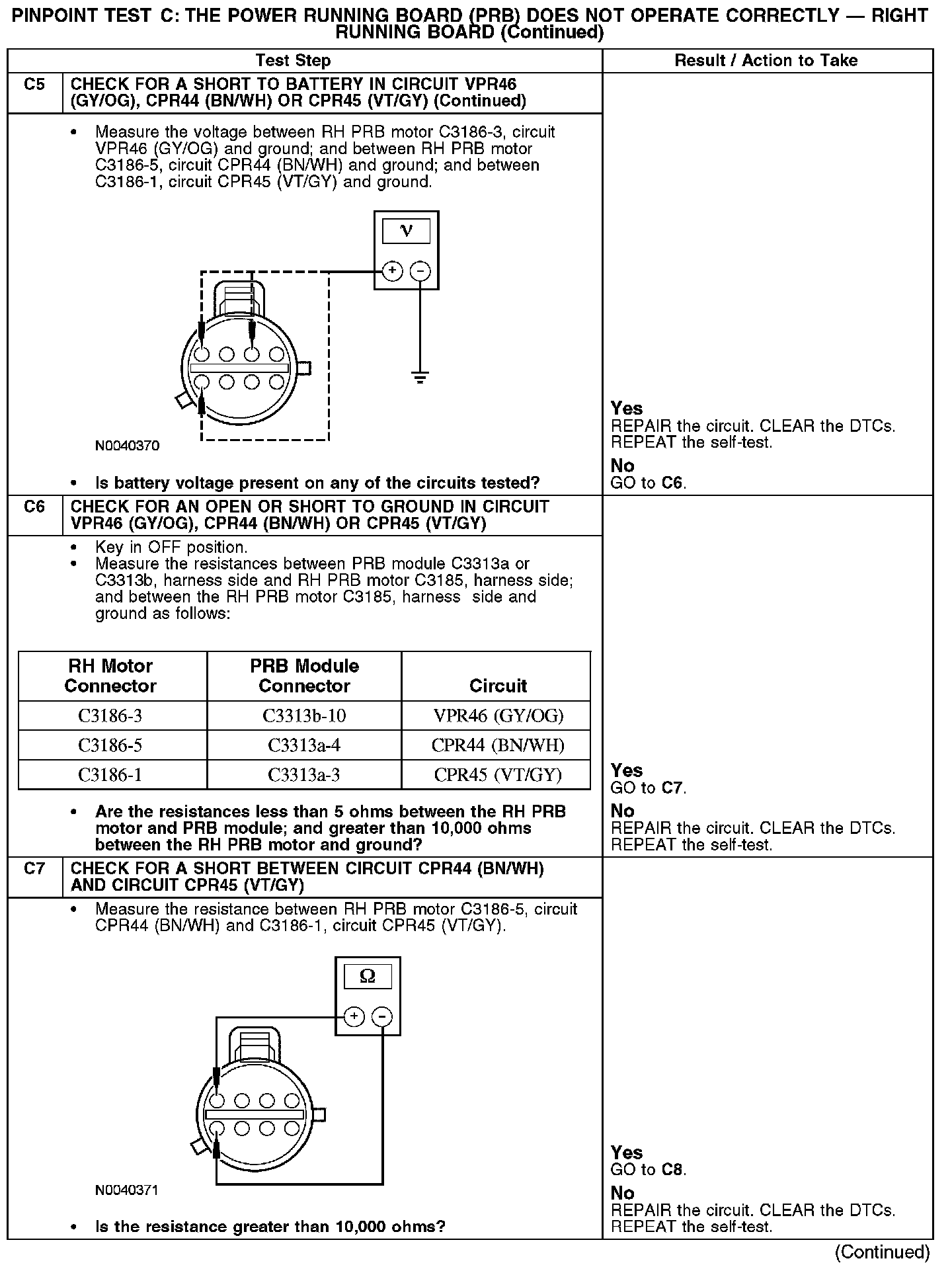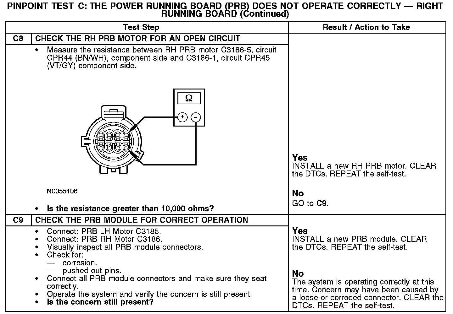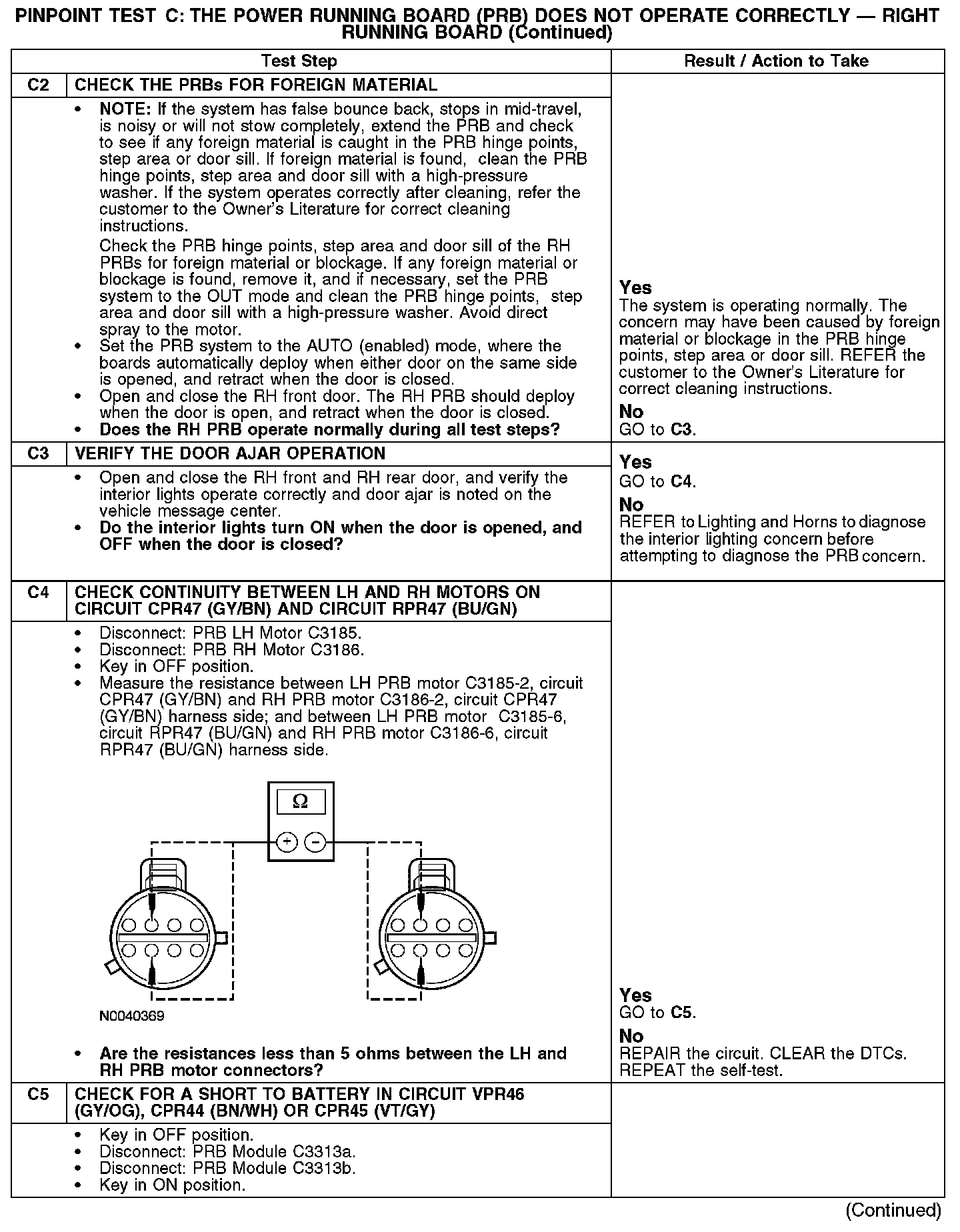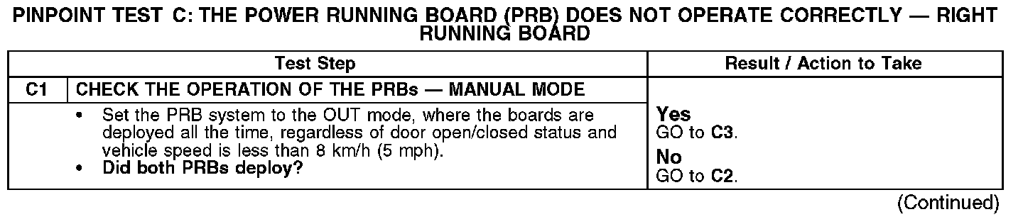 Test C: The Power Running Board (PRB) Does Not Operate Correctly - Right Running Board