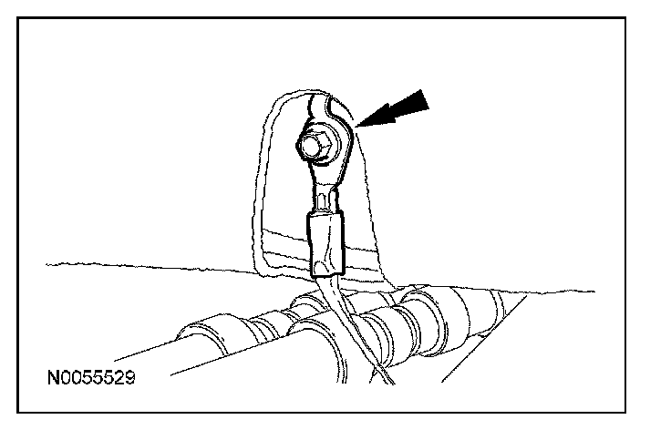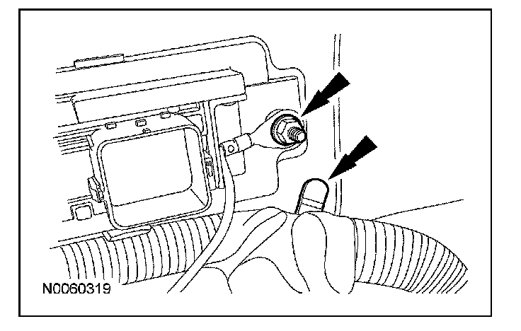 8. Remove the nut and the ground cable and disconnect the wiring harness retainer.