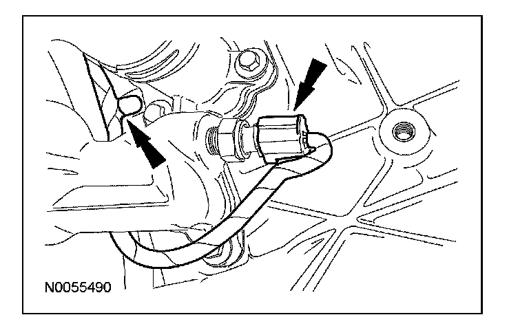 23. Disconnect the wiring harness position retainer and the crankshaft position (CKP) sensor and A/C compressor electrical connectors.