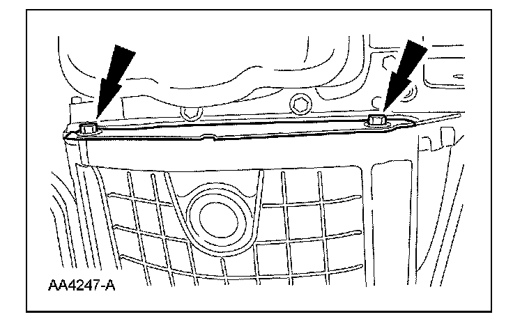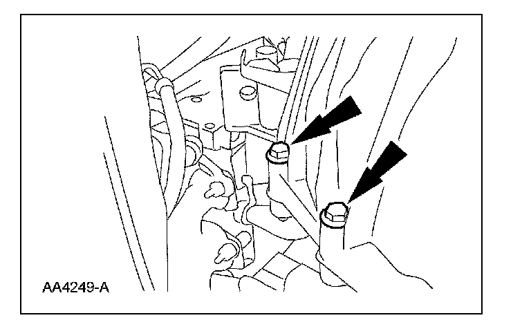 33. Remove the upper 2 transmission-to-engine bolts and install the special tool.