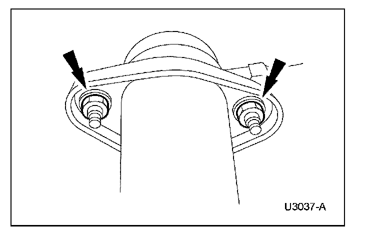 32. CAUTION: Only use hand tools when removing the engine support insulator through bolts or damage to the engine support insulator-to-cylinder block bracket can occur.