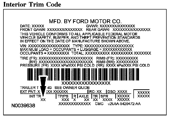 The interior trim codes are listed below. The first digit indicates the interior fabric. The second digit indicates the interior color.