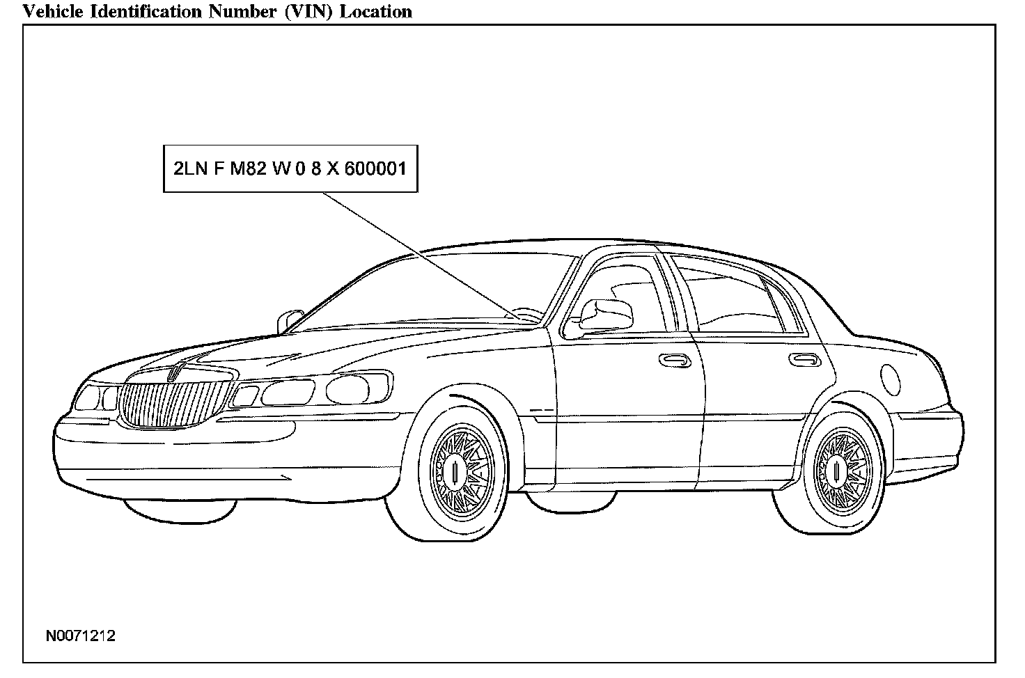 The vehicle identification number (VIN) is a 17-digit combination of letters and numbers. The VIN is stamped on a metal tab riveted to the instrument panel, top upper left of the dash. The VIN number is also found on the vehicle certification (VC) label.