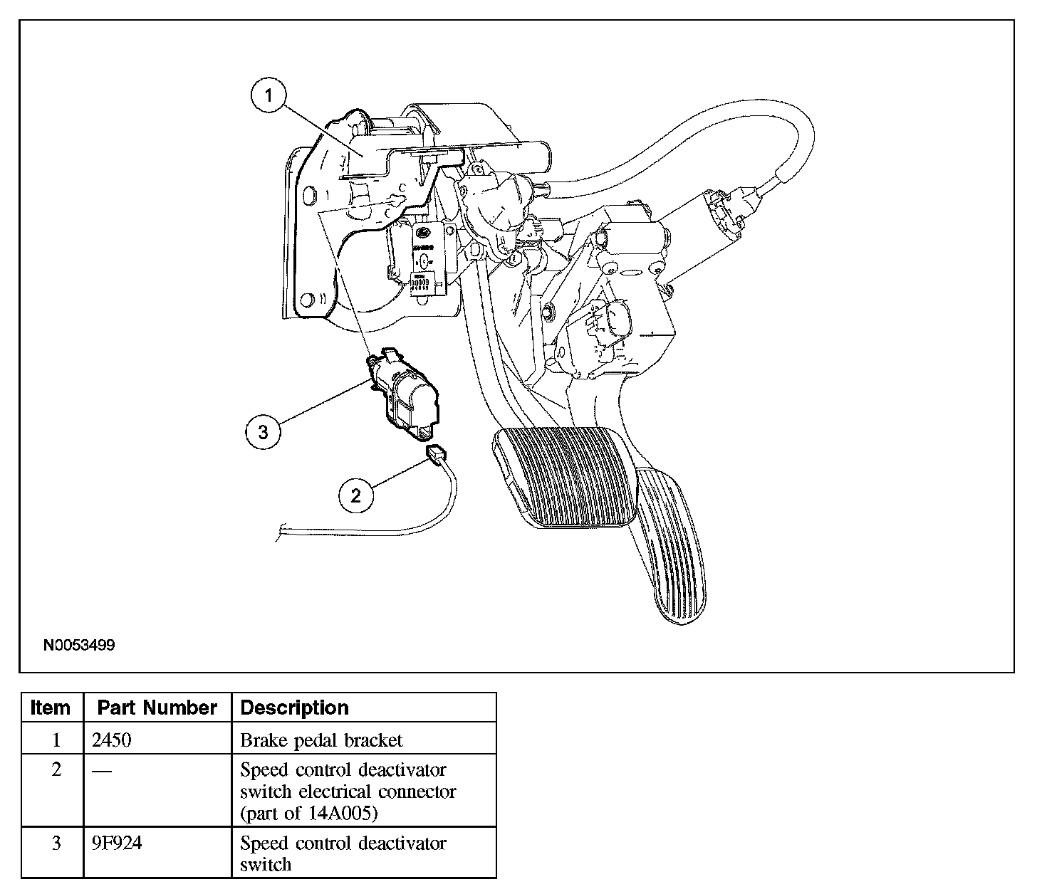 CAUTION: Do not press the pedal down when removing or installing the speed control deactivator switch, as the switch will be damaged.