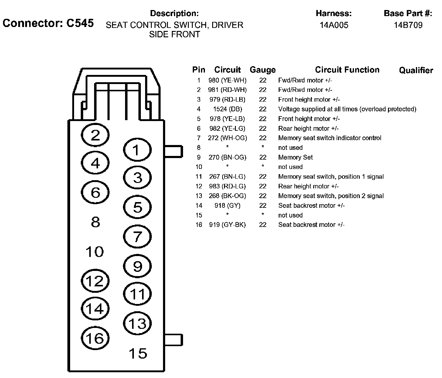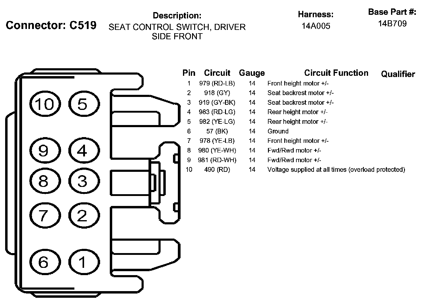 Seat Control Switch, Driver Side Front