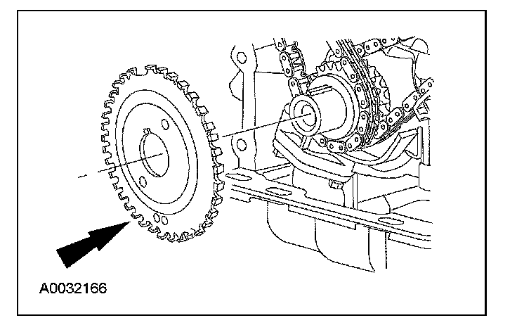 ^ Remove the RH timing chain from the camshaft sprocket.