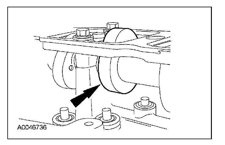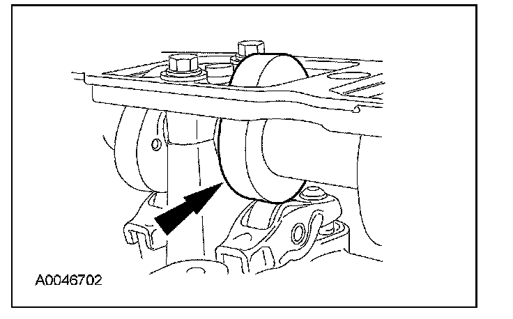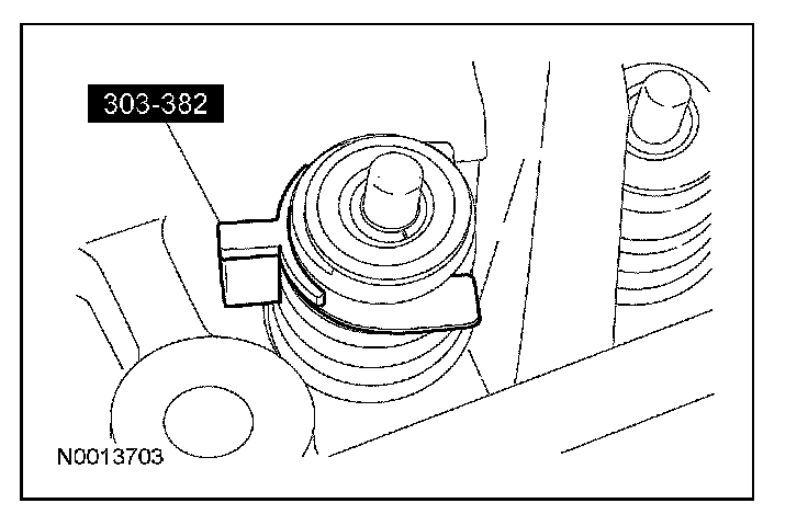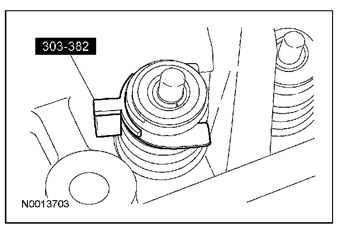 5. CAUTION: If one or both tensioner mounting bolts are loosened or removed, the tensioner-sealing bead must be inspected for seal integrity. Any cracks, tears, cuts or separation from the tensioner body or permanent compression of the seal bead will require replacement of the tensioner or damage to the engine may occur.
