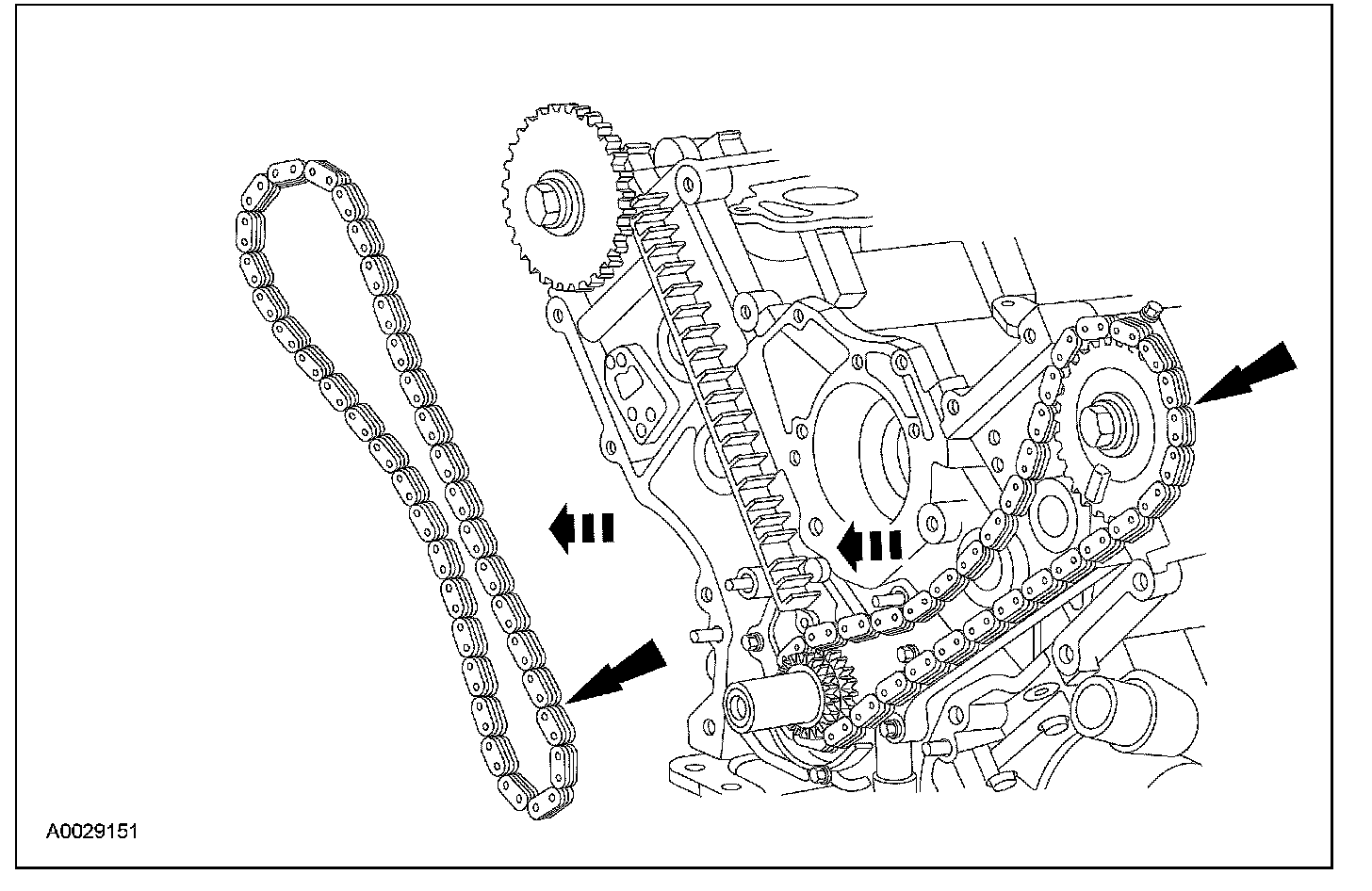 ^ Remove the RH timing chain from the crankshaft sprocket.