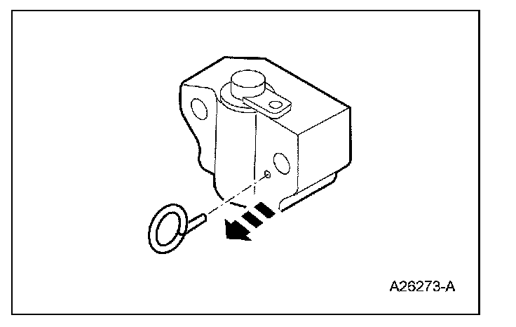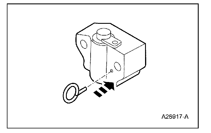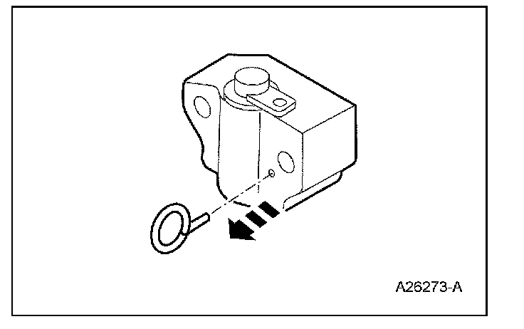 4. Install a paper clip into the hole of each tensioner housing to hold in the ratchet assembly and plunger during installation.