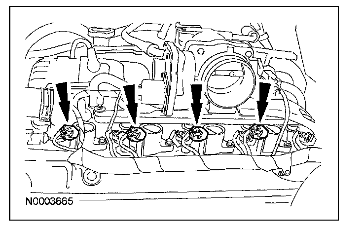 5. Remove the bolts and the 8 ignition coils (4 shown).