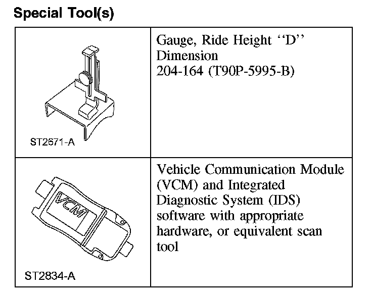 6. If ride height dimension D is not within specification, use the scan tool to vent or fill the air suspension to the correct dimension.