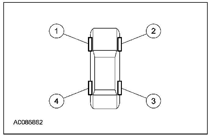 NOTE: If the vehicle has been stationary for more than 30 minutes, the sensors will go into a "sleep mode" to conserve battery power. It will be necessary to wake them up so they will transmit the latest tire pressure information to the driver door module (DDM).