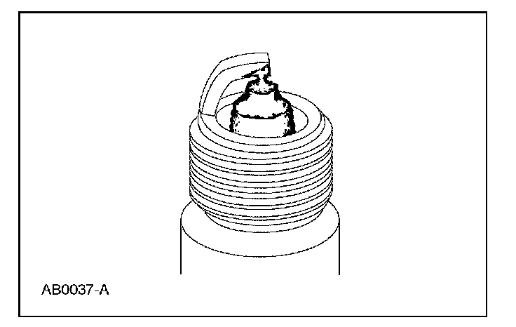 5. Inspect for pre-ignition, identified by melted electrodes and a possibly damaged insulator. Metallic deposits on the insulator indicate engine damage. This may be caused by incorrect ignition timing, wrong type of fuel or the unauthorized installation of a Heli-Coil(R) insert in place of the spark plug threads.