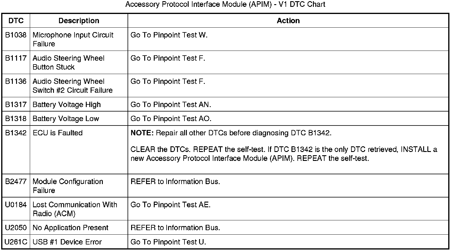 Accessory Protocol Interface Module (APIM) - V1 DTC Chart
