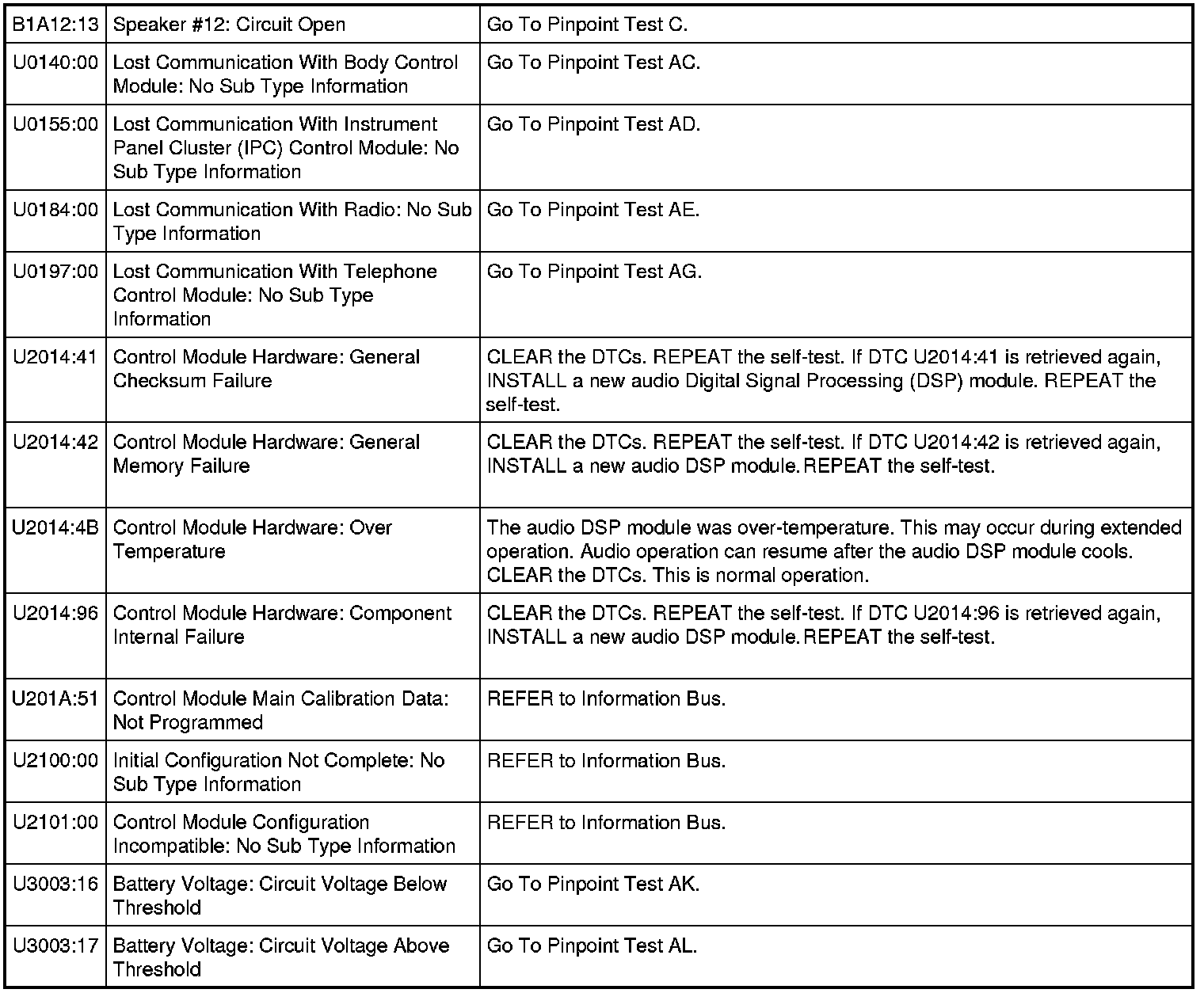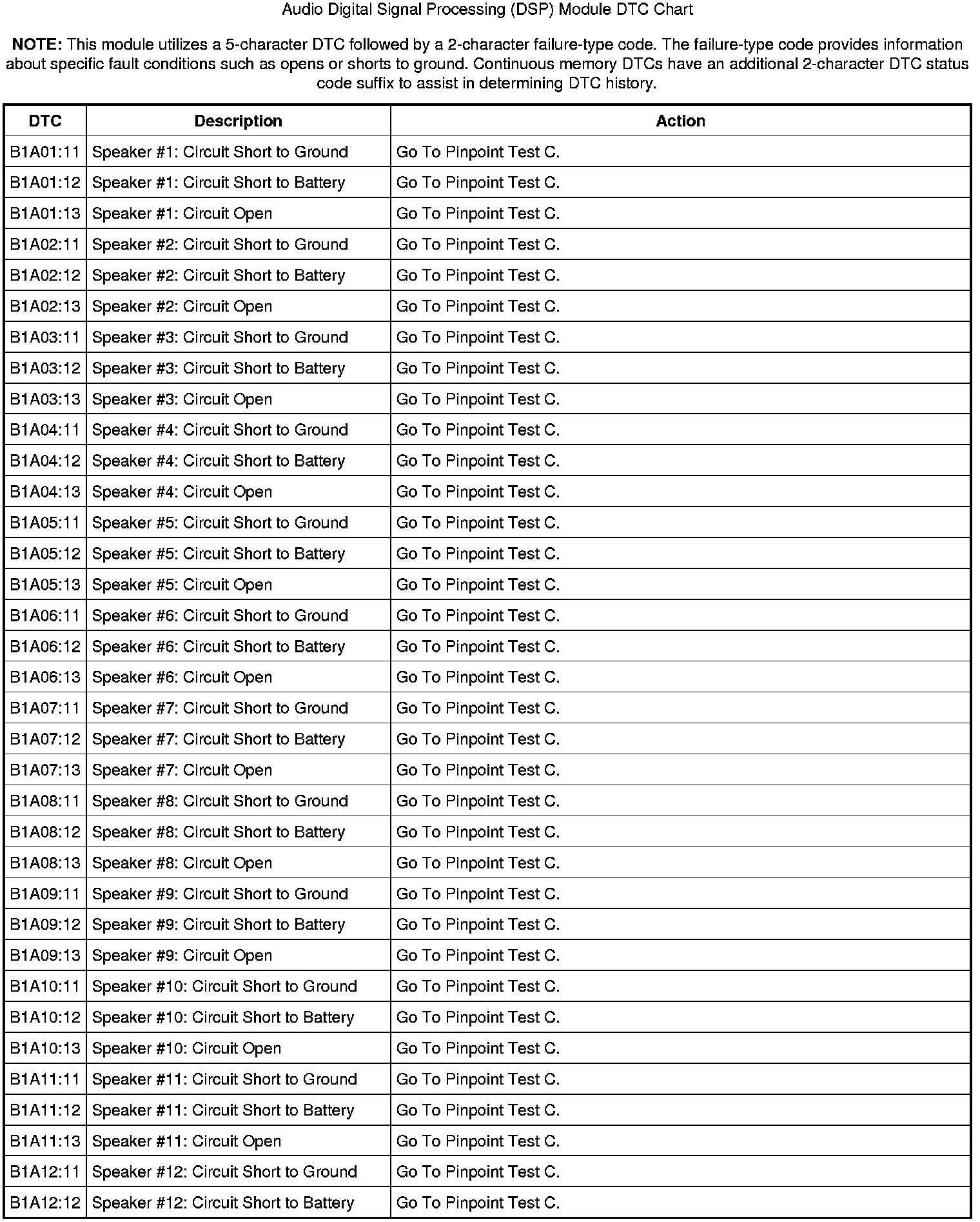 Audio Digital Signal Processing (DSP) Module DTC Chart