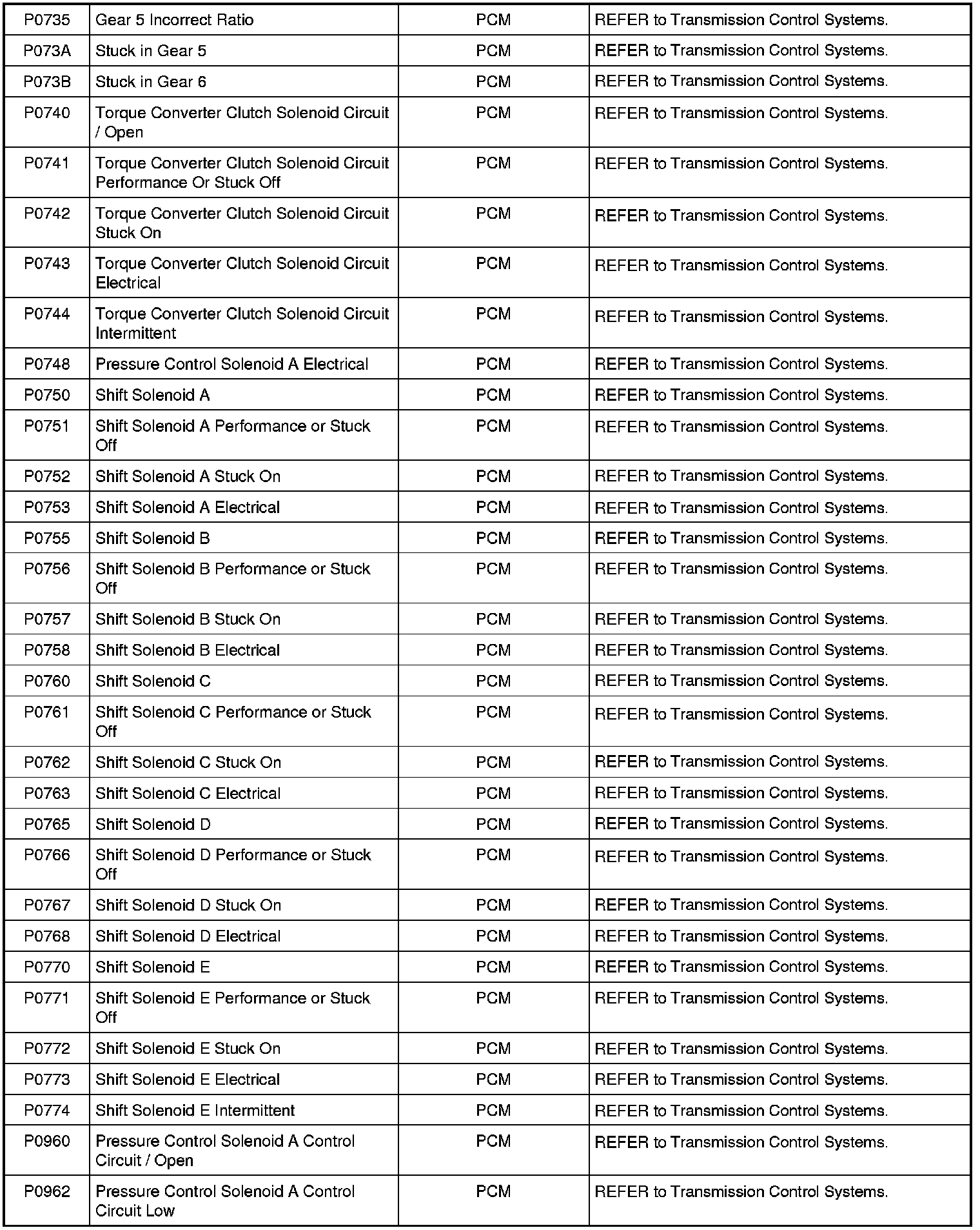 NOTE: Most powertrain (P-code) DTCs are diagnosed in Computers and Control Systems Information. If the P-code retrieved is not listed below, refer to Computers and Control Systems Information to continue diagnostics.