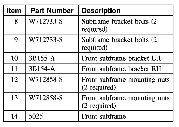 - During installation, the subframe brackets are loosely installed with the support bracket bolts. Tighten the rear subframe nuts prior to tightening the support bracket bolts.