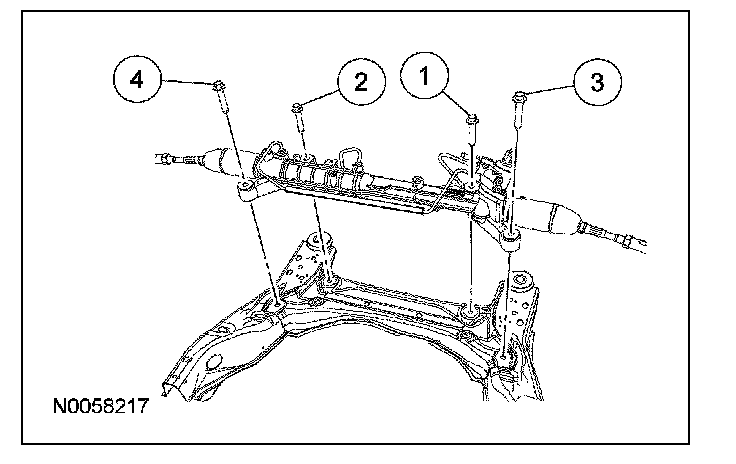 - To install, tighten the steering gear bolts in the sequence shown.