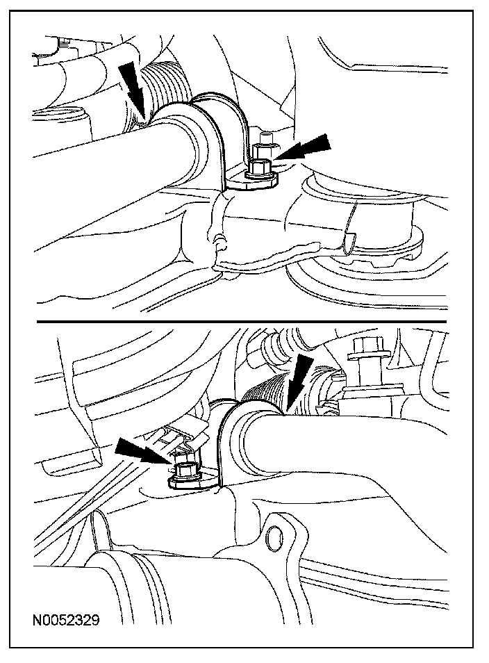 12. Remove the 4 bolts and position the stabilizer bar aside using a suitable length of mechanic's wire.