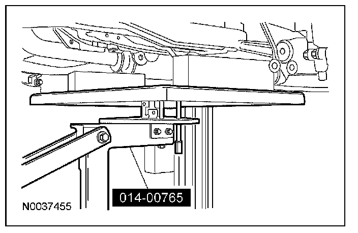 1. With a wax pencil, mark the relationship of the front subframe to the underbody at the mounting locations.