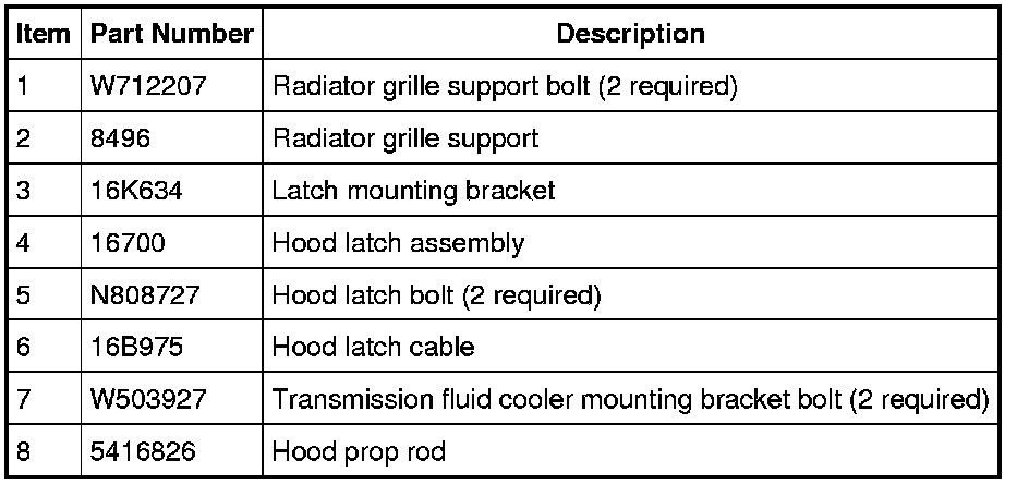 6. Remove the hood latch bolts and position aside the hood latch.