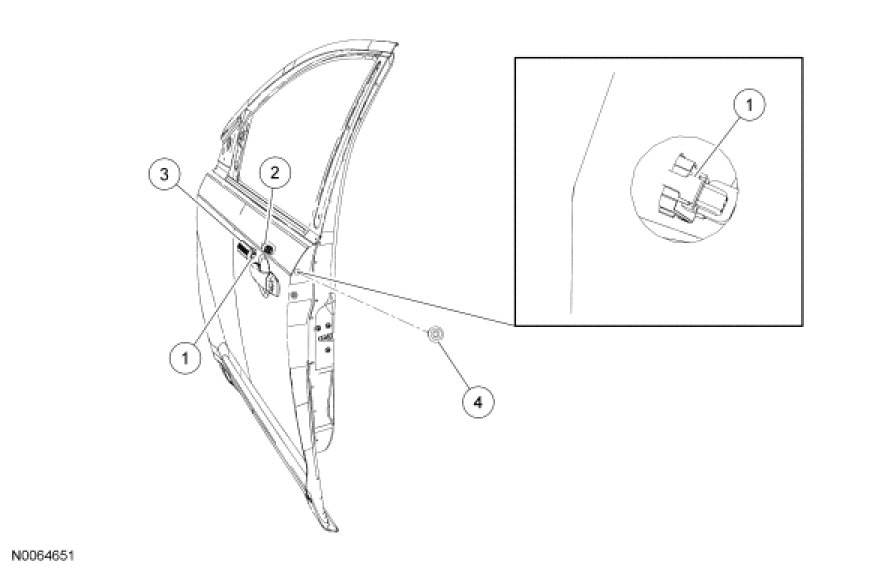 2. Using a long, flat blade screwdriver, or suitable tool through the upper access hole, release the rear keyless entry keypad retaining clip and position the keyless entry keypad aside.