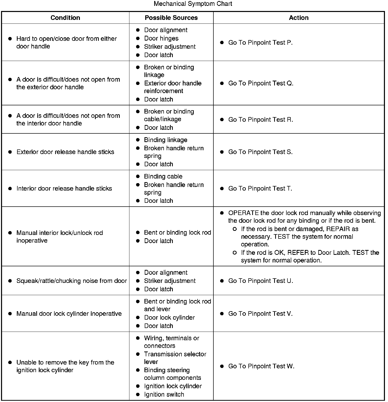Mechanical Symptom Chart: