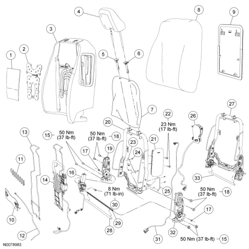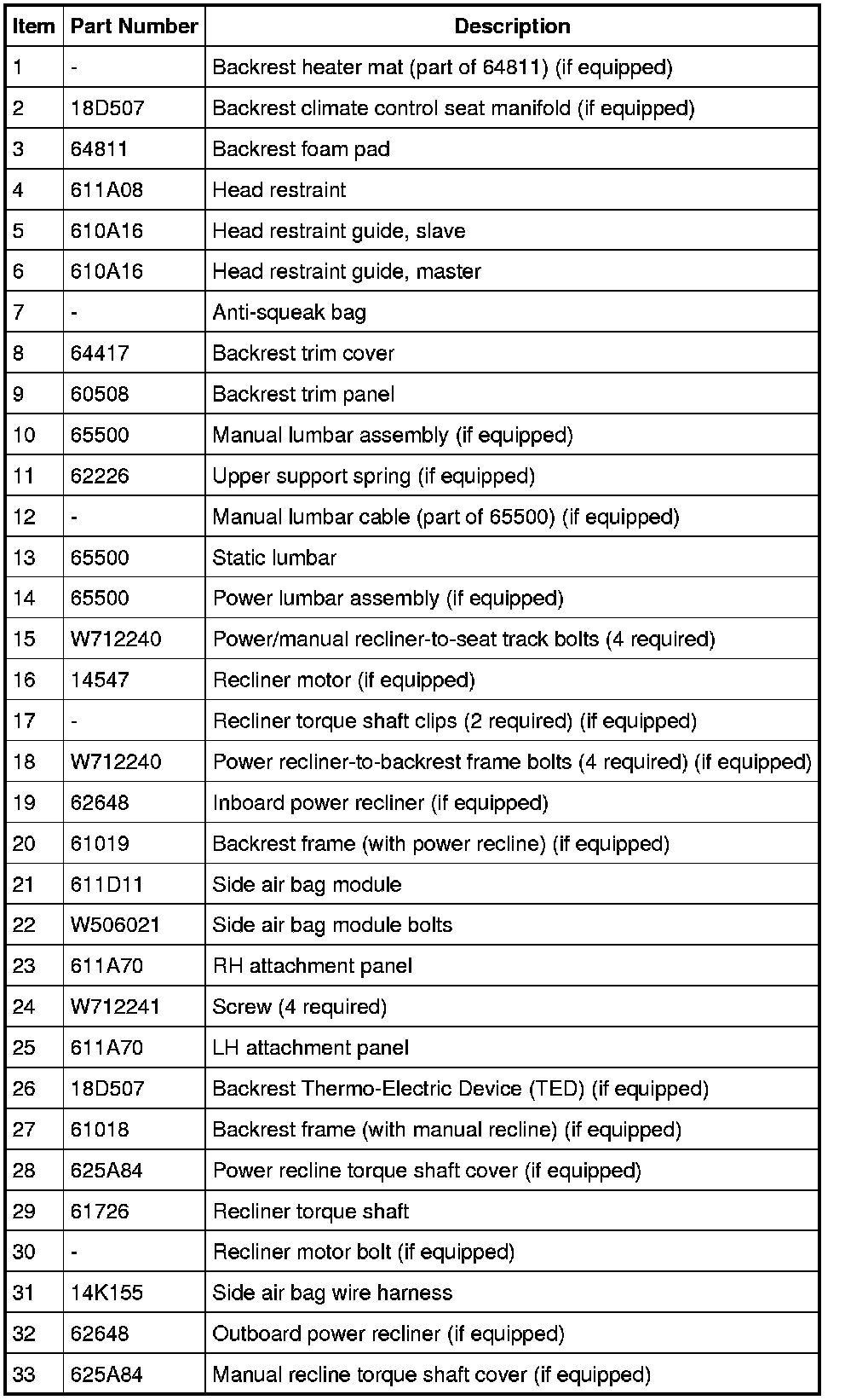 Front Seat Backrest, Manual and Power Recline, Without Fold Flat