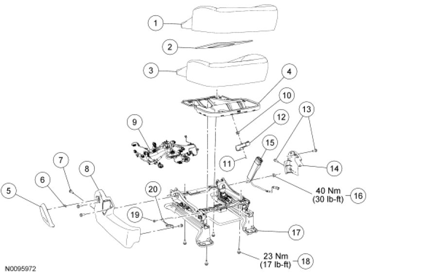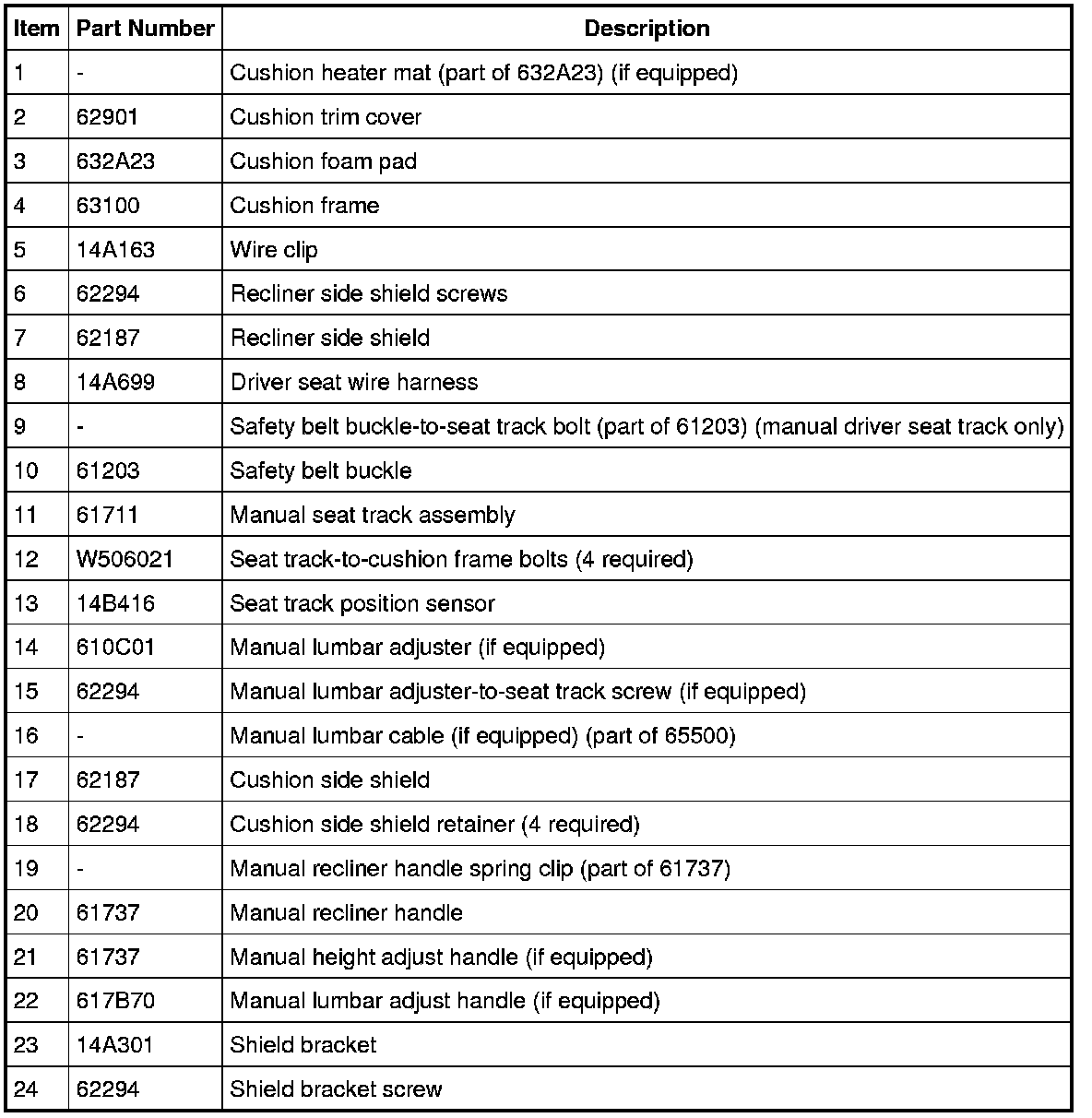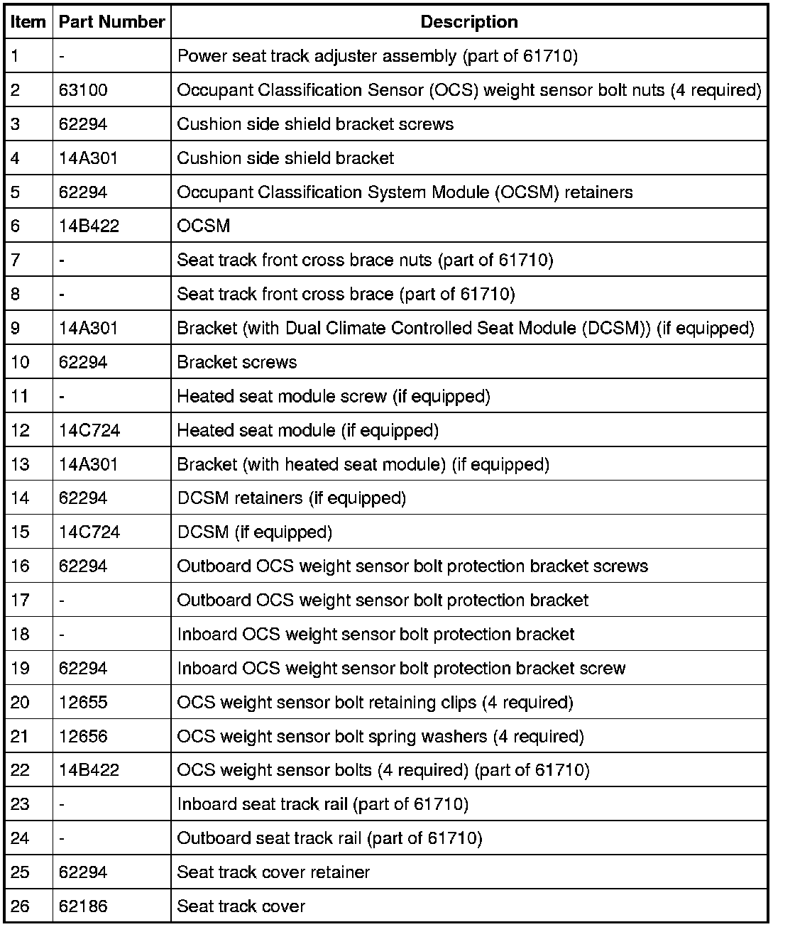 NOTE: To install a new Occupant Classification System Module (OCSM) or an Occupant Classification Sensor (OCS) weight sensor bolt, refer to the appropriate procedure in Air Bag Systems.