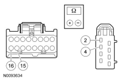 - NOTICE: The ohmmeter must be connected with the positive lead to pin 2 and the negative lead to pin 4 when measuring. Ohmmeter leads incorrectly connected will result in false readings and lead to incorrect identification of components that are not faulty.