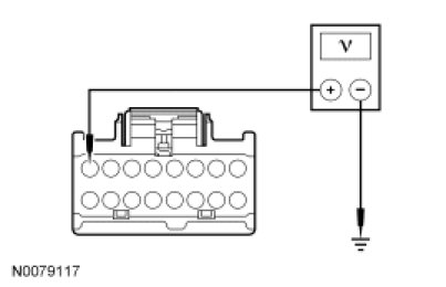 - Measure the voltage between DCSM C3036c-8, circuit CHS08 (BN/YE), harness side and ground.