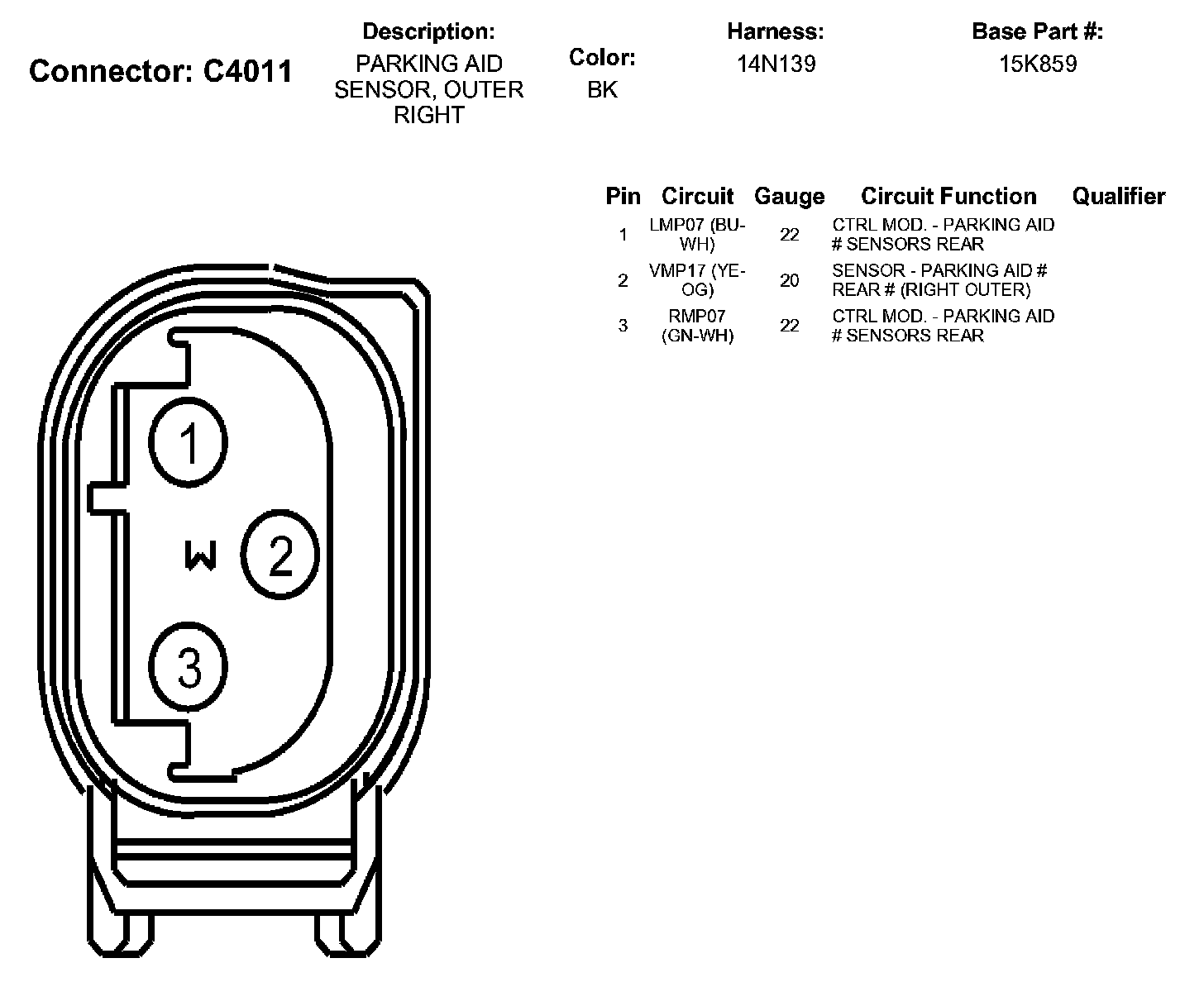 Parking Aid Sensor, Outer Right