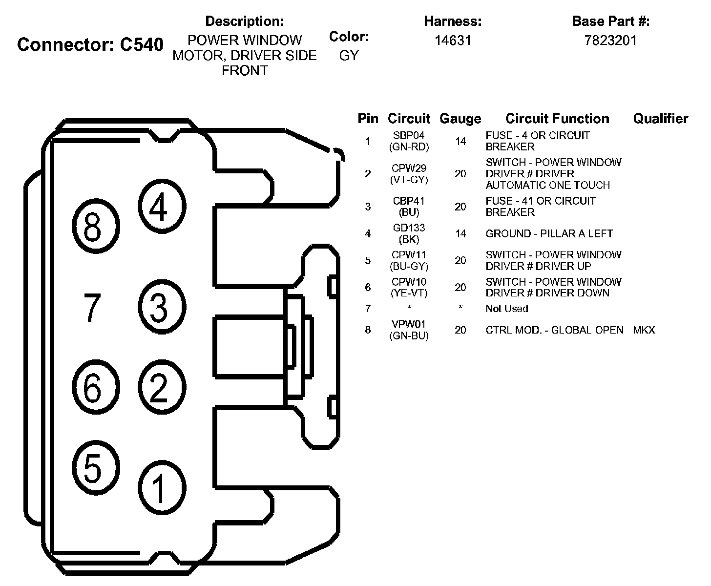 Power Window Motor, Driver Side Front