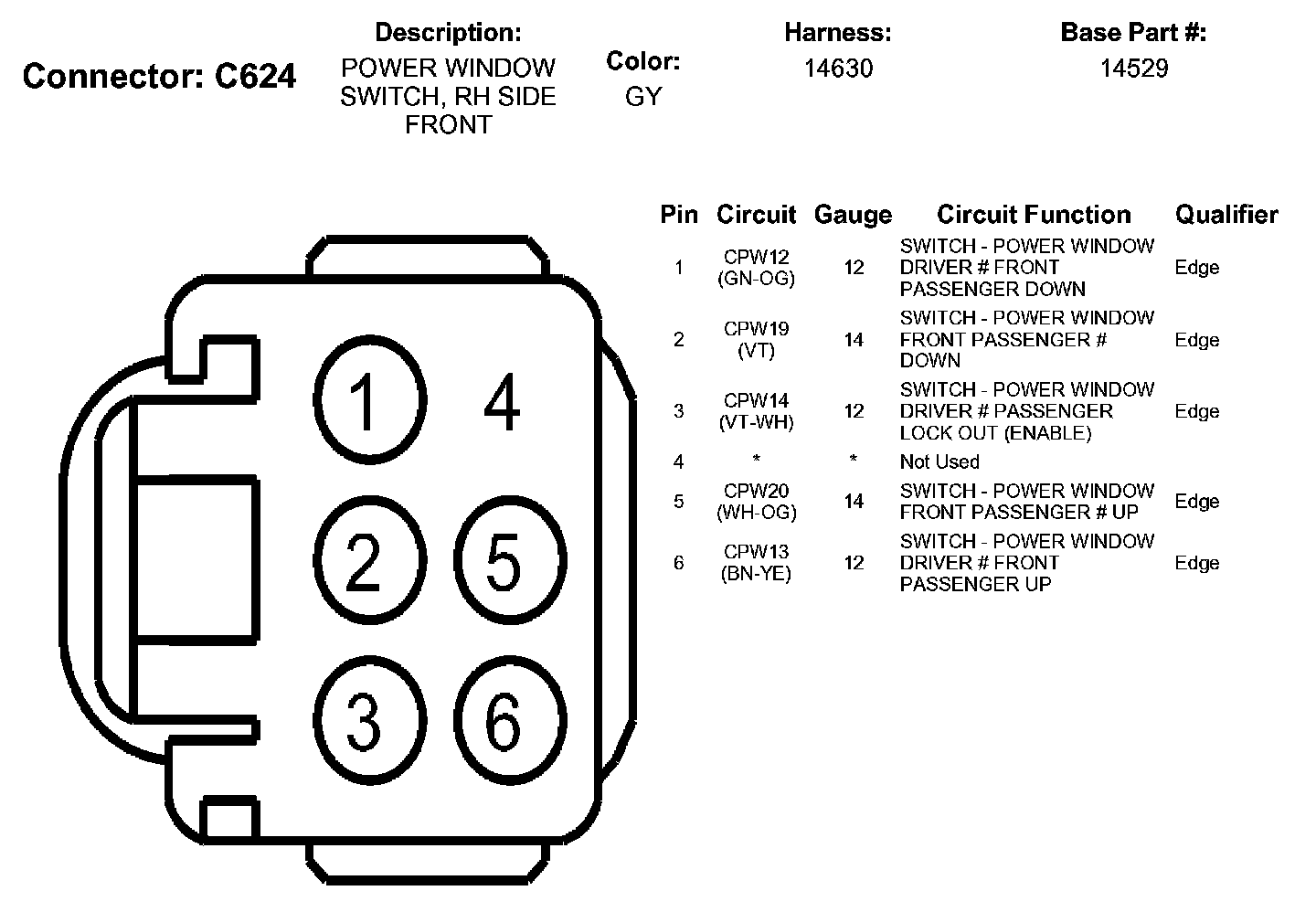 Power Window Switch, RH Side Front