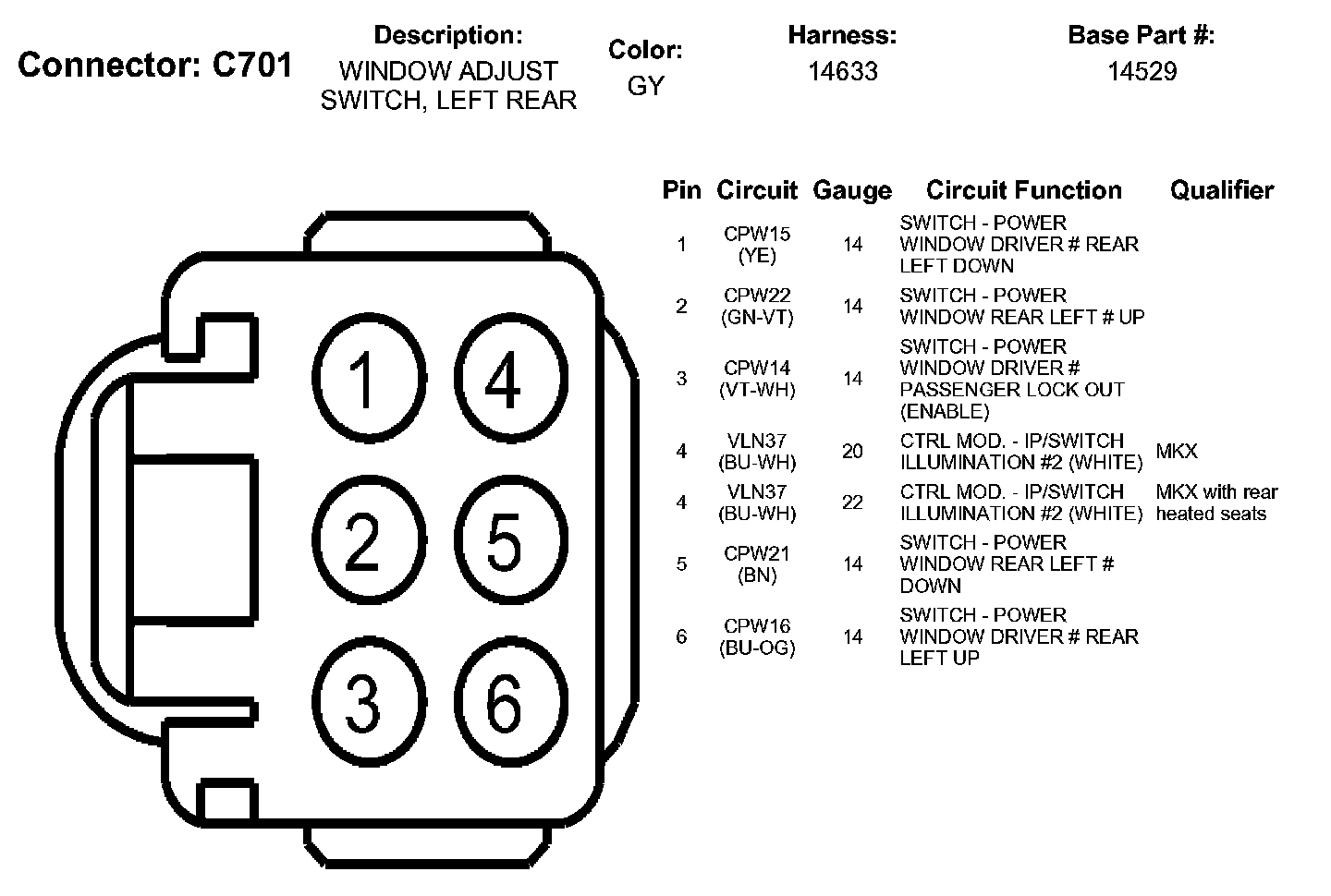 Window Adjust Switch, Left Rear